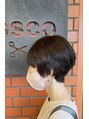 - 重めの前髪のショートにカット。前髪を縮毛して、ボリュームを抑えました。