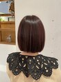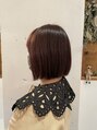 カットは襟足からサイドにかけてフラットに繋いで、切りっぱなしなラインを残して毛量調整しました。カラーはラベンダーピンクの8トーンで、艶が出やすい色味にしました。
