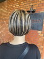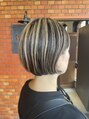 カットはグラボブで、丸みが出るように表面にレイヤーを入れてあります。カラーはトップをブリーチでぬいた、アンブレラカラーです。表面の白髪が気になる方にお勧めです。