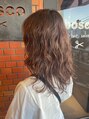 カットはセミロングのレイヤーで、毛量調整してあります。パーマは大きめのロットで緩く動きが出るように巻きました。オイルや、ムースなどでスタイリングします。