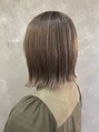 カットは切りっぱなしボブで、アイロンで外ハネにスタイリングし、バームで仕上げました。カラーは全体的にブリーチでハイライトを入れ、アッシュを乗せました。