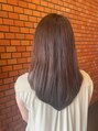 カットはバックのシルエットが、ラウンドのレイヤースタイルです。前からは鎖骨下の長さです。カラーは、オレンジと赤味を足した艶カラーです。明るさはは7トーンです。