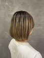 カットは襟足短めのボブです。丸みがつくように少しレイヤーが入っています。カラーはブリーチベースに地毛位のトーンのローライトと、ブリーチのハイライトをいれました。