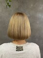カットは切りっぱなしの重さを残したボブです。厚みのあるウィック感を出しました。カラーはブリーチした後に、ハイトーンのベージュ系カラーをのせました。