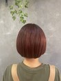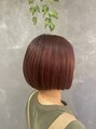 カットは前髪なしのワンレンミニボブです。サイドからバックまで真っ直ぐ繋いであります。カラーはピンクとレッドをミックスしたワインレッドにしました。カラーシャンプーで色味を維持できます。