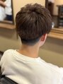 丸みのあるマッシュショート。サイドと襟足はツーブロックで清潔感抜群。自然なアッシュブラウンカラーとノーセットでも形が決まる万能スタイル。