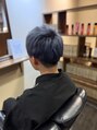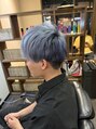 透明感のあるグレーブルーのヘアカラーが印象的なマッシュショートスタイル。サイドをツーブロックですっきり刈り上げ、トップにボリュームを持たせた軽やかな仕上がりです。