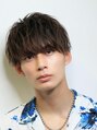 スッキリ目のマッシュベースにカットしてクルッとしすぎないシャープな質感のゆるめスパイラルパーマをかけたスタイル