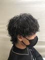 波巻きウルフ(刈り上げツーブロック黒髪パーマ)