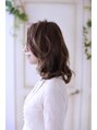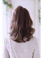柔らかなベージュカラーのゆるふわミディー♪斜めバングで大人可愛いカールスタイルに!ムースを揉み込めば簡単スタイリングで完成。カラーは黒髪、マーメイドアッシュやノーブルカシスなど何でも似合います^^カール強めのグラマラス&エレガントも◎