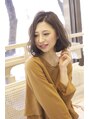 大人かわいいミルクティーカラーのミディアム。メルトカラーやイノセントカラーとの相性も◎斜めバングでうぶバングを演出。短過ぎないシースルーが大人っぽいです。伸ばしかけの方はエアウェーブやデジタルパーマがオススメです。パーマで小顔に変身♪