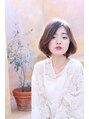 大人かわいいミルクティーカラーのショート。メルトカラーやイノセントカラーとの相性も◎斜めバングでうぶバングを演出。短過ぎないシースルーが大人っぽいです。伸ばしかけの方はエアウェーブやデジタルパーマがオススメです。パーマで小顔に変身♪
