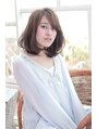 大人かわいいミルクティーカラーのミディアム。メルトカラーやイノセントカラーとの相性も◎斜めバングでうぶバングを演出。短過ぎないシースルーが大人っぽいです。伸ばしかけの方はエアウェーブやデジタルパーマがオススメです。パーマで小顔に変身♪