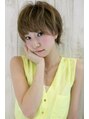 大人かわいいハニーベージュカラーのショート。メルトカラーやイノセントカラーとの相性も◎斜めバングでうぶバングを演出。短過ぎないシースルーが大人っぽいです。伸ばしかけの方はエアウェーブやデジタルパーマがオススメです。パーマで小顔に変身♪