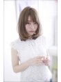 大人かわいいミルクティーカラーのミディアム。メルトカラーやイノセントカラーとの相性も◎斜めバングでうぶバングを演出。短過ぎないシースルーが大人っぽいです。伸ばしかけの方はエアウェーブやデジタルパーマがオススメです。パーマで小顔に変身♪