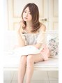大人かわいいミルクティーカラーのミディアム。メルトカラーやイノセントカラーとの相性も◎斜めバングでうぶバングを演出。短過ぎないシースルーが大人っぽいです。伸ばしかけの方はエアウェーブやデジタルパーマがオススメです。パーマで小顔に変身♪