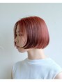 ショートボブ/切りっぱなし/センターパート/ダブルカラー/レッド