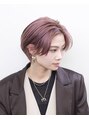 ハンサムショート/センターパート/ピンクベージュ/ダブルカラー