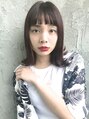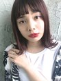 鎖骨ラインの外ハネロブ。カラーはレッドバイオレット系の深みのある暖色系。前髪を眉上で設定したカジュアルだけどストリートモード感もあるスタイルです!Killa原宿/表参道