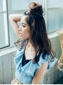 こめかみあたりからトップでおだんごにしたアレンジスタイル。分け目はきっちり取らずに、ジグザグに取ることでラフでオシャレになります!おろした髪はゆるウェーブで☆