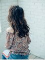 あきげでカッコイイスタイルに大きめのウェーブで甘さを加えたオフェロなヘアスタイルになっています☆ウェーブをつけてエアリー感と華やかさを演出!センターパートで分けるとキレイめなスタイルにも変身することができます。