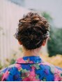 全体をなみ巻きします。ざっくり分けとってくるりんぱをします。アンダーは逆巻きにしてシニヨンを作ります。カジュアルにもエレガントにも多用できるスタイルです。