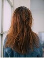 全体的に重めベースのロングスタイル。束感が出るようにハイライトを入れて、さらにグラデーションカラーにしました。重めだけど動きの出るスタイルに。バングもつくらず、かきあげスタイルでカジュアルに。大人っぽく。
