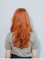 流行りのセンターパートスタイル!大人ナチュラルな印象を与えるスタイルですが、カラーリングをアプリコットオレンジカラーにすることで、個性的な印象に!オレンジ系のカラーリングは暖かく元気な印象も与えてくれます!