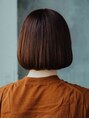 襟足は首が綺麗に見える長さでサイドはアゴ少し下の長さになるように切りっぱなしボブでカットし、横から見たときのシルエットが綺麗になるようにグラデーションを重ねるようにカットしています!秋カラーでミニマムボブ!