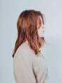 カットは前上がりの胸上の長さにカット!重たく見えやすいのでカラーは明るめのオレンジで重たくならないようにしました!スタイリングはなるべく四角いボックスになるように毛先の広がりを抑えるようにし、中間にウェーブが出るように巻きました!