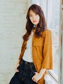 重ためカットベースのウェーブです。カラーはツヤがでやすいナチュラルブラウン系です。32ミリのコテで中間から毛先をウェーブ状にゆる巻きしていきます。トップは毛束をポイントで取って巻くことで立体感がでます。