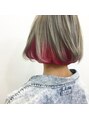 《tlony 渋谷 hori》得意のハイトーンインナーカラー。ワイドバング、切りっぱなしボブ、グレージュ、グラデーションカラー、くびれミディ、ボブ、伸ばしかけ、スタイリング、、センターパート、マーメードアッシュ、個性的、黒髪、シールエクステ