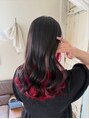 ビビッドな発色がきれいなレッドのインナーカラーです。表面部分は地毛に近いくらい暗めになります。ブリーチ回数1回~、ご相談下さい。