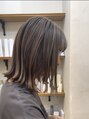 髪の表面だけブリーチで明るく、内側はトーンを落としてカラーしてます。白髪が伸びても馴染むカラーです/じっくりカウンセリングさせていただき、その人らしく「日常がちょっと楽しくなるヘアスタイルづくり」を心がけています。