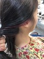 もみあげラインと襟足ラインにブリーチをしてパープルピンクを入れました。仕事でカラーがダメな方にもオススメです。プライベートは巻いたり、アレンジしたりするとキレイな色が現れます。