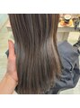 ブリーチでハイライトを全体的に入れて透明感のあるグレージュです!前回もハイライトを入れているのでストレートでも立体感のある仕上がりになっています!