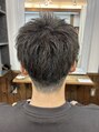 襟足をすっきり刈り上げ、トップは束感が出やすい長さに設定したマッシュショート。軽さと立体感を出し、動きのあるシルエットに。ワックスを揉み込むだけで簡単にキマる扱いやすいスタイルです。