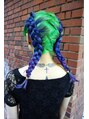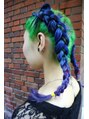 マニパニグラデーションスタイルのアレンジスタイルです。グリーン~ブルー~パープルのグラデーションになっています。根本がすべてグリーンですので、編みこむとグリーンの髪の毛にブルーの綱が乗っているように見えます☆