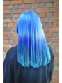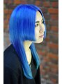 少し薄めたブルーに濃いめのグリーンでスライスを入れることでターコイズブルーを再現。ラフにストレートでのばし、シックな印象に。【派手髪】【ハデ髪】【マニックパニック】【マニパニ】