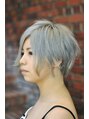 全体にブリーチを行い明るくなった髪に、ブルーアッシュをオン。ハイライトとして細く明るいラインを残していることで、動きを演出。【派手髪】【ハデ髪】【マニックパニック】【マニパニ】