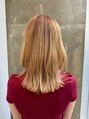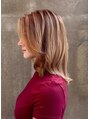 胸上から鎖骨レングスまでCUT。TOPにつながないレイヤーをプラスしました。フェイスラインを包み込むようにラウンドカット。 ウェットの髪に、アバンダントブローアウトを適量塗布して馴染ませてドライ。フワリと揺らぎがうまれてとっても良い感じでGOOD。