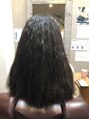 けっこう強めの癖毛のお客様です!髪のダメージ履歴は根本は健康毛で中間はアルカリ縮毛矯正3回!!!毛先は更にダメージしてます!黒髪なのでダメージしてないように感じますがハイダメージでした!驚きの変化を体験してみませんか♪
