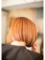 綺麗なオレンジのハイライト/バレイヤージュのボブ