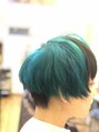 ターコイズブルー×黒ライン×刈り上げマッシュ