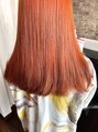 全体を一度ブリーチしオレンジを重ねました!暗染めをしていたので少し残留もあったのですがオレンジは発色しやすいので綺麗に発色しています(^^)