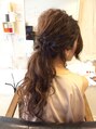 フィッシュボーンを取り入れたクラシカルポニーテール風ハーフアップです!こういう大人かわいいヘアアレンジは幅広い層から人気があります♪ブライダルや二次会のドレスとも相性良し☆その他ルーズなヘアから盛りヘアまで何でもお任せください!