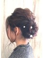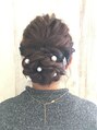 トレンドを全部おさえたルーズアップstyle♪ラフさ、ゆるふわ感が大人かわいい印象を与えます☆オリジナル髪飾りで華やかさup!!トップは波ウェーブをあて、サイドに編み込みをしています♪パールアレンジ、タッセル飾りあります♪
