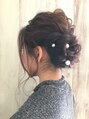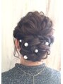 トレンドを全部おさえたルーズアップstyle♪ラフさ、ゆるふわ感が大人かわいい印象を与えます☆オリジナル髪飾りで華やかさup!!トップは波ウェーブをあて、サイドに編み込みをしています♪パールアレンジ、タッセル飾りあります♪