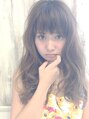 ダブルカラーでハイトーンの透明感アッシュで透き通るような肌感を創りました♪斜めバングで甘めバングにしながら全体的にセミウェットな質感を演出☆ニュアンスカールでやわらかさを♪