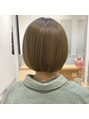 ブリーチ必須の透け感たっぷりベージュカラー。カットはパツっとしたラインのボブで。オールシーズンオススメのスタイルです☆
